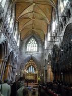 | チェスター大聖堂を見学した。ヨーロッパはどこへ行っても、素晴らしい技法を凝らしたステンドグラスや彫刻、パイプオルガンなど工夫や遊び心がいたるところに見られる。 少しの自由時間を過ごして後、ペンリスへ移動(200km) |