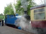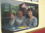| 6月13日(土) ノースレイクホテル&スパには連泊なので荷物整理が楽なところがいい。今日は一日湖水地方の観光である。 レイクサイドで船を降りそこからハヴァースウェイトまでは蒸気機関車でへ移動。座席にはテーブルが付いていて、JTB様とカードが置かれ座席が確保されていた。パンフレットも日本語版があり、日本人観光客が多いことがうかがえた。蒸気機関車での旅は20分程であったが、ここからの眺めも良かった。 |