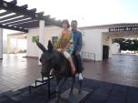 ミハス村は、良い天気なので白い建物が真っ青な空に映えて、素晴らしいの一言だった。駐車場近くには観光者用にロバがたくさんいた。 マップを頼りに村を歩いたのだが、斜めの道やくねくね道、階段や坂に惑わされ思ったより下ってしまい、ただでさえ暑いのに集合場所には汗をかきながら小走りで登って行くことになってしまった。 |
