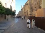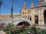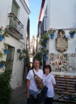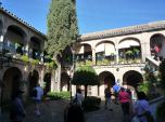| 24日(金) 今日も快晴。朝の空気は気持ちが良い。早朝からコルドバへ向かう。メスキータとユダヤ人街を観光した。メスキータの中の礼拝堂や円柱の森、ユダヤ人街の白い壁に飾ってある、青い鉢に植えられた赤い花が印象的であった。 また、イスラム風の建物や入り組んだ細い道、その奥にはホッとするパティオが広がっていた。 |