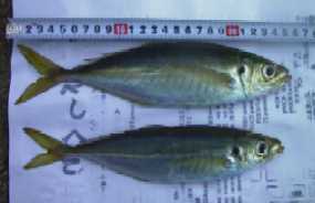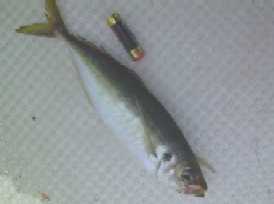 ・敦賀市のハラさんら2人と敦賀湾内でアジ釣りに釣行 ・天候は曇り、風・波は少々有り ・アジ(10cm〜22cm)30匹、ヒラアジ(22cm)1匹 ・小あじにヒラメが食い付いたが、道糸が細かったため、痛恨のバラシ!40cm近くあったと思われる。くやし〜い!!! ・カマスも狙ったがまったく釣れず。どこへ行った? ・水島周辺でイルかと遭遇。超感激しました。 |