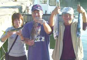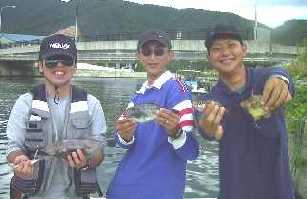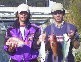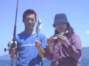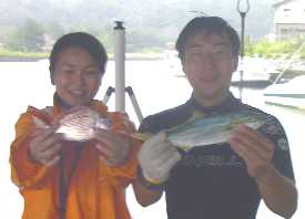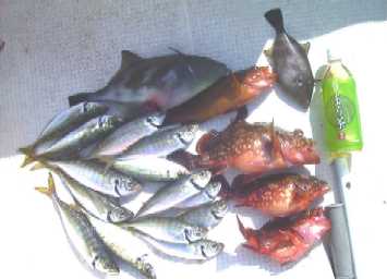 ・彦根市-myu2さん他1人と立石沖で五目釣りに釣行 ・天候は雨のち晴、波が高く沖での釣行時間2時間、その後湾内でアジ釣り実施 ・メンカ〔小鯛〕(15cm〜25cm)15匹、カワハギ(20cm〜25cm)8匹、ハマチ(35cm)1匹、カイワリ(28cm)1匹、アジ(18cm〜25cm)25匹 ・かなり波が高いため、船長酔い気味にもかかわらず、小学生の女の子は楽しそうに釣りをしていた。ビックリ! ・今日はカワハギに代わって、メンカが入れ食い。 ・湾内のアジも中アジサイズだが、一時期爆釣! ・天気は悪かったが、まずまず楽しめたかな? |