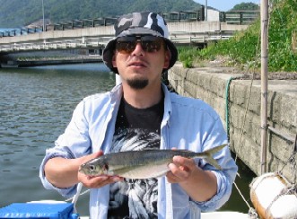 ・横山さんと2人で敦賀湾沖にてアジ釣りに釣行 ・天候は晴れ、風・波は強くなったり、弱くなったり・・・ ・大アジ(38cm)1匹、アジ(28cm・20cm)2匹、メンカ(28cm〜20cm)13匹、カワハギ(30cm前後)9匹の釣果。 ・朝、用事があったため8時30分に出港、約5時間の釣果 ・子供のころに数回船釣りをしただけで、久々の船釣だった横山さん。まずまずの釣果に満足して頂けたかな? ・もう少しアジが釣れると最高だったのに・・・。時間帯が悪かったせいかな? ・今年は天候が良くても南風が強い日が多く、なかなか釣行できません。 ・早く爆釣を楽しみたいものです。 |