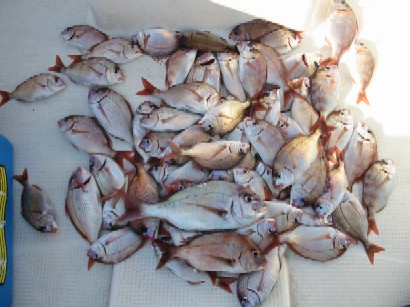 ・ゲンさんと2人で敦賀湾沖にてフカセ&五目に釣行 ・天候は曇り時々晴れ、風・波はほとんどなし ・マダイ(40cm,30cm)2匹、メンカ(30cm〜25cm)73匹の釣果。 ・フカセでは4時間ねばったが青物こず。マダイのみ。 ・お土産確保のため五目釣りに変更。メンカ超爆釣!!!4匹連なってあがってくることが多かった。過去最大の数釣りでした。メンカ釣りは約2時間の釣果で73匹でした。 ・メンカは脂ものっており、塩焼き最高です! |