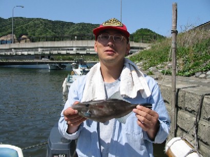 ・元山さんと2人で敦賀湾沖にて五目釣り&フカセ釣りに釣行 ・波はまったくなく、雲がかかっており、最高の釣り日和 ・完全フカセでは今年初のマダイが上がりました ・カワハギは超爆釣! ・専用引っ掛けに3匹引っかかることも・・・ ・体長1.5mぐらいのサメを見ました。それも最初は背ヒレだけ見えており、ボート際までツバスを追いかけてきたようです。まさに映画の1シーンのようで、ちょっと怖かった。 |